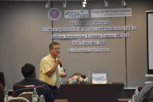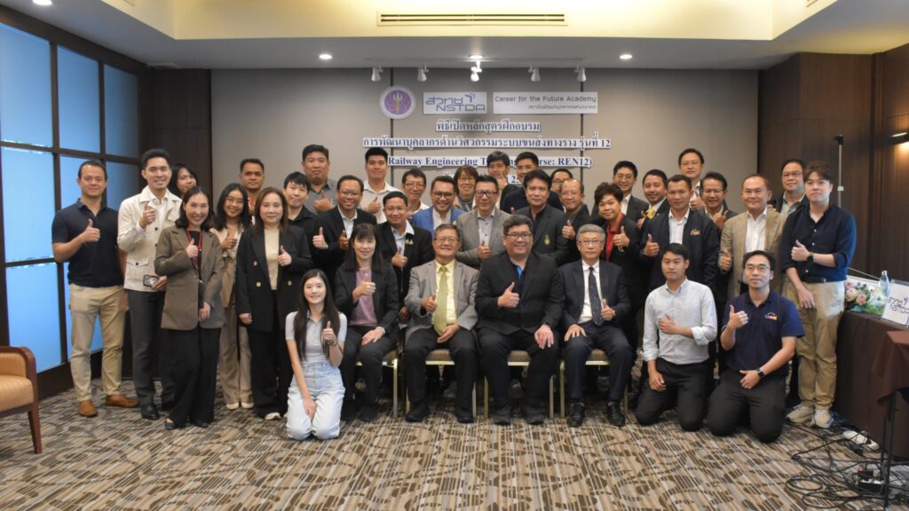 เมื่อวันที่ 5 มิถุนายน 2568 สถาบันพัฒนาบุคลากรแห่งอนาคต (Career for the Future Academy: CFA) สวทช. ได้จัดพิธีเปิดการฝึกอบรมหลักสูตร “การพัฒนาบุคลากรด้านวิศวกรรมระบบขนส่งทางราง รุ่นที่ 12″ (วศร.12) ณ โรงแรมเซ็นจูรี่ พาร์ค กรุงเทพ โดยมี ดร. อดิสร เตือนตรานนท์ ผู้ช่วยผู้อำนวยการ สวทช. กล่าวต้อนรับและเปิดการฝึกอบรม คุณมลุลี พรโชคชัย รักษาการผู้อำนวยการสถาบันพัฒนาบุคลากรแห่งอนาคต กล่าวรายงานการอบรม คุณนคร จันทศร ที่ปรึกษาหลักสูตร วศร.กล่าวปฐมนิเทศ และนายกสมาคมวิศวกรรมระบบขนส่งทางรางไทย (วศรท) และผู้แทน วศร.1-11 ร่วมแสดงความยินดี โดยในพิธีเปิดการอบรมมีการบรรยายพิเศษ หัวข้อ “การพัฒนาอุตสาหกรรมระบบรางในประเทศไทยและนโยบายการสนับสนุนจากภาครัฐ” โดยคุณศุภฤกษ์ สุดยอดประเสริฐ หัวหน้ากลุ่มมาตรฐานโครงสร้างพื้นฐาน ผู้แทนจากกรมการขนส่งทางราง