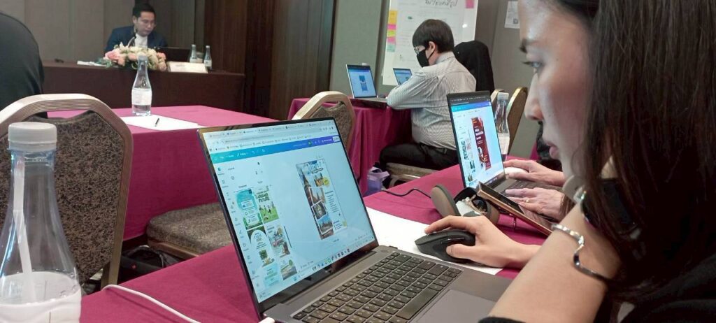 ในการเข้าอบรมครั้งนี้ผู้เข้าฝึกอบรมได้รับทั้งความรู้ บูรณาการการใช้เครื่องมือ AI เช่น ChatGPT, Midjourney, Canva Magic Studio เข้ามาช่วยในการระดมความคิด, สร้างเนื้อหา, ออกแบบภาพ, และปรับปรุงงานได้อย่างรวดเร็วและมีประสิทธิภาพ พร้อมเรียนรู้เทคนิคและไอเดียต่างๆมากมาย จากวิทยากร คุณทินกร พรมดีมา นักวิชาการ จากสำนักงานพัฒนาวิทยาศาสตร์และเทคโนโลยีแห่งชาติ ที่มีประสบการณ์ทางด้านการสอนหลักสูตร Infographic ให้กับหน่วยงานทั้งภาครัฐและภาคเอกชนมาแล้วอย่างมากมาย ผู้เข้าฝึกอบรมได้เรียนรู้ผ่านทั้งการบรรยายและการทำ Workshop ร่วมกันทำให้มีเข้าใจเพิ่มมากขึ้นด้วยการลองคิดและทำจริงจากโจทย์การออกแบบ หัวข้อ”ลืมภาพจำเก่า! เปิด 5 เทรนด์ท่องเที่ยวไทย 2026 ที่จะเปลี่ยนทริปคุณไปตลอดกาล” โดยผลงานของผู้เข้าฝึกอบรมทุกท่านออกแบบและสร้างสรรค์การนำเสนอที่หลากหลาย น่าสนใจและเข้าถึงกลุ่มเป้าหมายได้อย่างชัดเจน