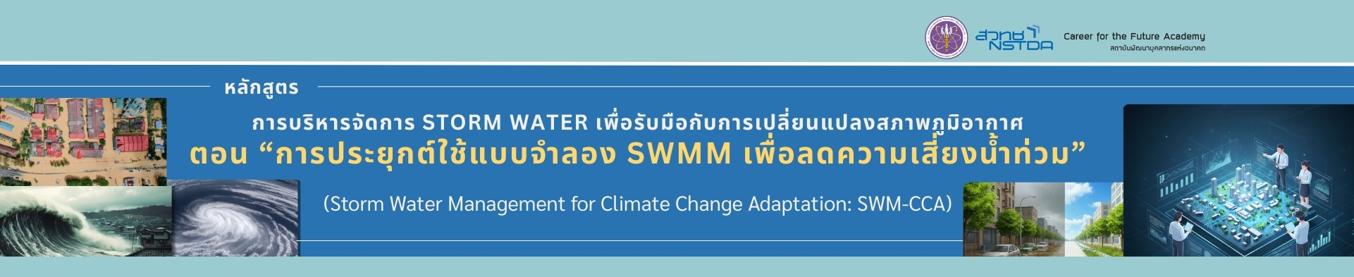 สำนักงานพัฒนาวิทยาศาสตร์และเทคโนโลยีแห่งชาติ (สวทช.) โดยสถาบันพัฒนาบุคลากรแห่งอนาคต ได้จัดฝึกอบรมหลักสูตรการบริหารจัดการ Storm Water เพื่อรับมือกับการเปลี่ยนแปลงสภาพภูมิอากาศ ตอน การประยุกต์ใช้แบบจำลอง SWMM เพื่อลดความเสี่ยงน้ำท่วม (Storm Water Management for Climate Change Adaptation: SWM – CCA) ระหว่างวันที่ 25 – 26 มีนาคม 2569 ณ โรงแรมเซ็นจูรี่ พาร์ค กรุงเทพ โดยได้รับเกียรติจาก ดร.ศิโรจน์ ศิริทรัพย์ นักวิจัยอาวุโส ทีมวิจัยการจำลองและระบบขับเคลื่อนด้วยข้อมูล กลุ่มวิจัยวิทยาการข้อมูลและการวิเคราะห์ ศูนย์เทคโนโลยีอิเล็กทรอนิกส์และคอมพิวเตอร์แห่งชาติ (NECTEC) เป็นวิทยากรในหลักสูตร