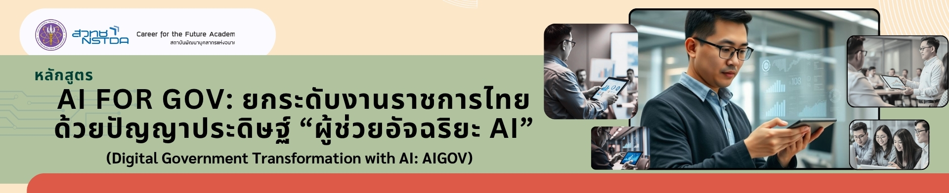 หลักสูตรนี้มีวัตถุประสงค์เพื่อส่งเสริมขีดความสามารถของข้าราชการและเจ้าหน้าที่ ให้สามารถใช้ AI เป็นผู้ช่วยอัจฉริยะในการทำงานได้อย่างมั่นใจ โดยผู้เข้าอบรมจะได้เรียนรู้เทคโนโลยี Generative AI ที่ใช้ฟรีๆ กับหน่วยงานราชการ และความปลอดภัยสูง และ AI เอนกประสงค์ อย่าง ChatGPT, Microsoft Copilot และ Google Gemini ฝึกใช้ Prompt เพื่อสร้างเอกสารอัตโนมัติ วิเคราะห์ข้อมูล และออกแบบแผนงานที่มี AI ร่วมขับเคลื่อนพร้อมทำ Workshop แบบลงมือจริงกับกรณีศึกษางานภาครัฐที่พบได้บ่อยในชีวิตจริง เสริมด้วยแนวทางการประเมินผลและวางแผนใช้งาน AI อย่างปลอดภัยและเป็นธรรม โดยมีผู้ให้ความสนใจและเข้าร่วมอบรมจากหน่วยงานภาครัฐ จำนวนทั้งสิ้น 35 ท่าน