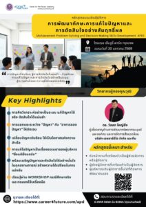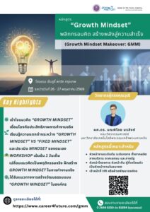 | หลักสูตร “Growth Mindset” พลิกกรอบคิด สร้างพลังสู่ความสำเร็จ (Growth Mindset Makeover: GMM) |