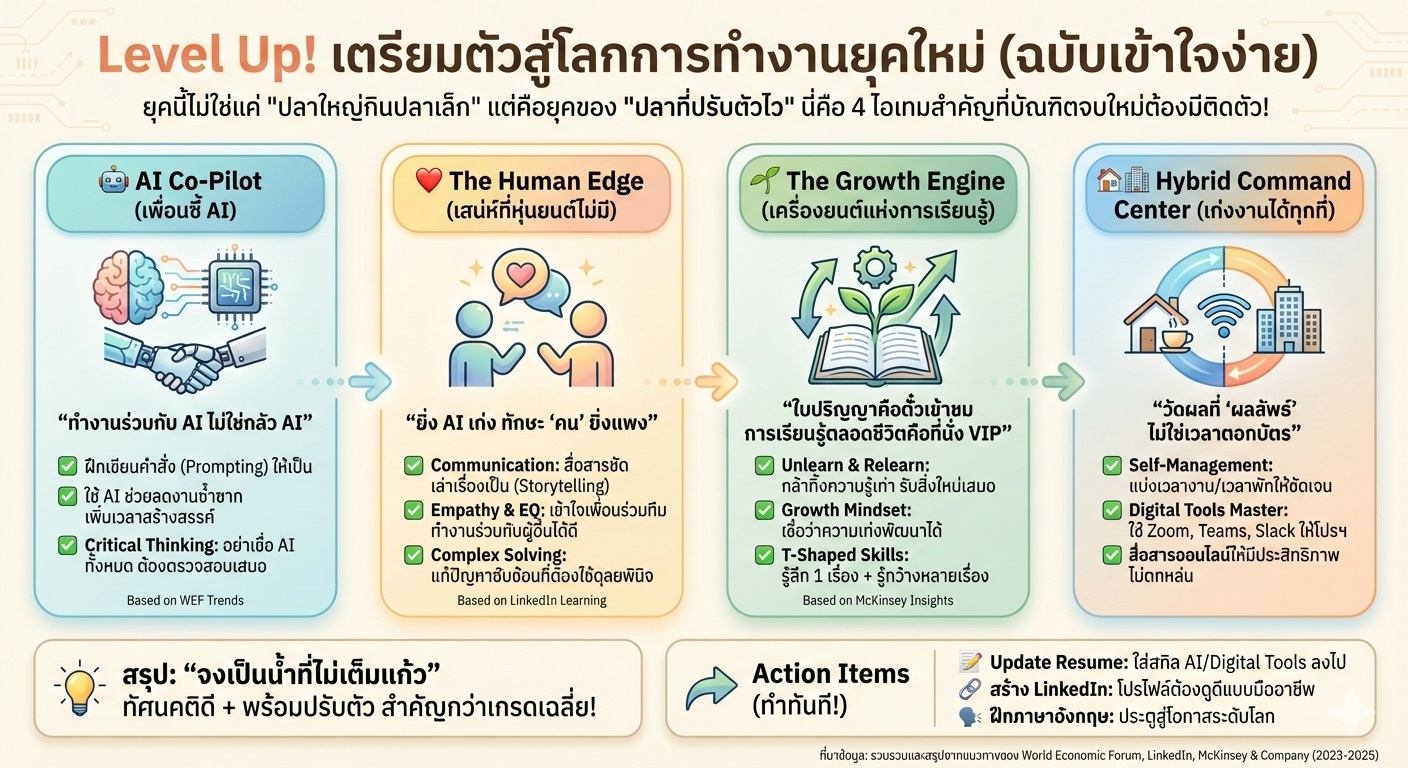 - เลือกใช้เครื่องมือที่เหมาะสม: สามารถเลือกและประยุกต์ใช้ซอฟต์แวร์และเครื่องมือ (เช่น Canva, AI Tools) ได้อย่างเหมาะสมเพื่อเพิ่มความรวดเร็วและประสิทธิภาพของงาน